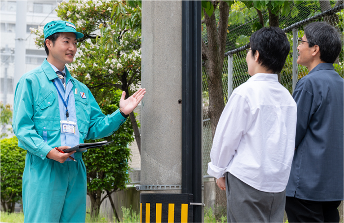 人々の生活を支える仕事がしたいと思い、福利厚生の手厚さにも魅力を感じて当社を志望しました。現在は「巡視業務」と「お客さま対応業務」を担当し、電柱設備の点検や、お客さまからのお申出への対応を行っています。職場は明るく、分からないことは気軽に相談できる雰囲気です。