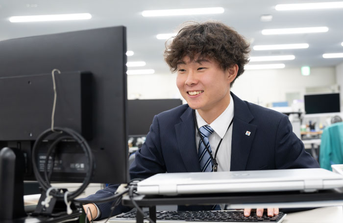 職場は明るく、相談しやすい雰囲気です。社会人になってからは、報連相やビジネスマナーを意識して行動できるようになりました。これから就職活動を迎えるみなさんも、新しい環境に不安を感じることがあると思いますが、自分のペースで頑張ってください。応援しています!
