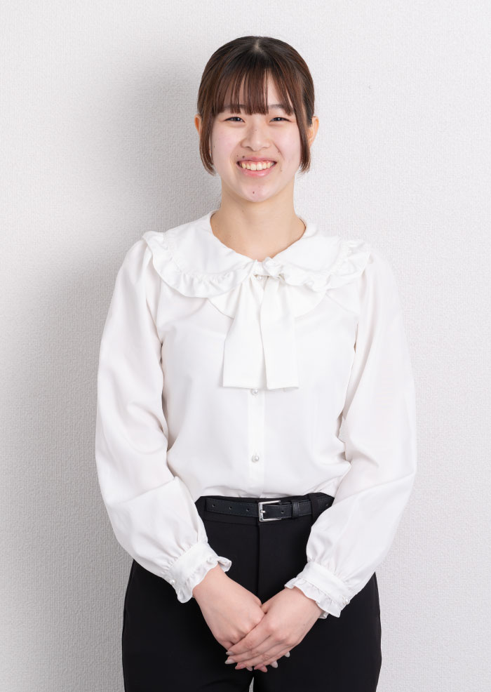 職場は明るく活気があり、相談すれば丁寧に教えていただけ、安心できる環境です。学生時代は人見知りでしたが、社会人としてお客さまと話す機会が増え、分かりやすく説明することを意識する中で、初対面の方とも自然にコミュニケーションを取れるようになりました。学生時代の経験は大きな財産です。苦しい時も成長のチャンスだと思い、日々を前向きに過ごしてください。