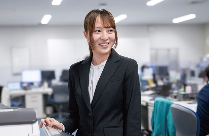 現在は企画部企画グループに所属し、業務運営方針や長期・中期経営計画の策定を担当しています。経営層や関係部署との打合せを重ねながら資料を作成し、会社の方針決定に携われることに大きなやりがいを感じています。
