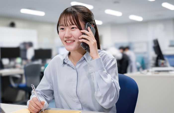 分からないことを気軽に聞ける環境で、先輩方も互いに相談しながら業務を進めています。社会人になってからは主体的に行動する意識が芽生え、メモを活用することで苦手な業務のミスも減りました。学生のみなさんには、今しかできない経験を楽しみ、周囲への感謝を大切にしながら残りの学生生活を満喫してほしいと思います。